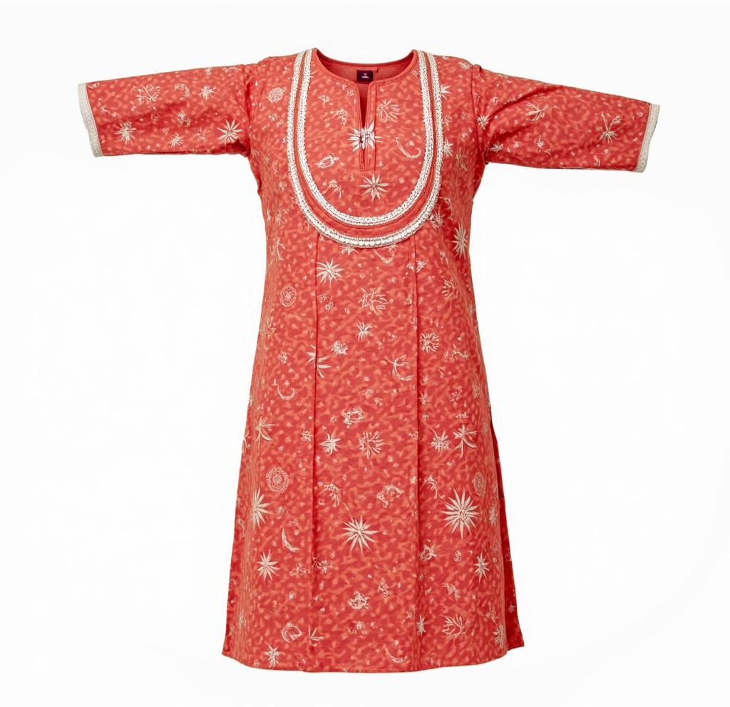 Add a touch of grace to your wardrobe with this stunning rust-red floral printed cotton kurti. Featuring delicate white floral motifs and intricate lace detailing on the neckline, this piece exudes effortless elegance. The soft and breathable fabric ensures all-day comfort, making it a perfect choice for casual outings, office wear, or festive gatherings. The three-quarter sleeves and flowy silhouette enhance its charm, providing a flattering fit for all body types. Pair it with leggings, palazzos, or even denim for a chic ethnic look.